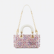 Bag Lady Dj Micro – White Calfskin w/ Pink Floral Emb & Strass
